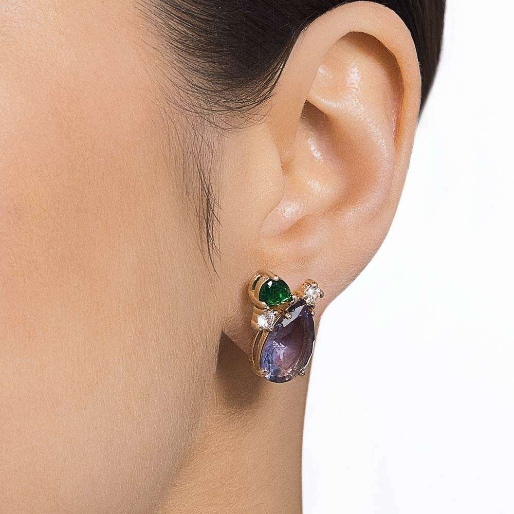 Para que tus aretes de colores mantengan su belleza intacta, guárdalos en su estuche original. Evita rociarles directamente perfumes o productos para el cabello. Límpialos con un paño suave y seco antes y después de cada uso para que siempre estén listos para brillar.