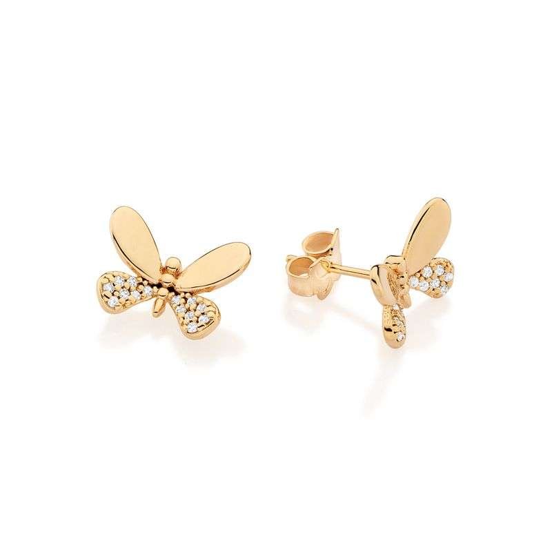 Aretes de Mariposa con Circonias Enchapados en Oro de 18 k