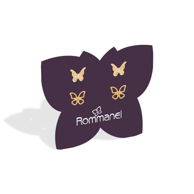 Descubre este práctico kit de aretes que incluye dos estilos de mariposas chapadas en oro de 18 k. Una pieza sólida y otra calada, para que alternes según tu look o las combines en tus múltiples perforaciones, aportando un detalle femenino y moderno.
