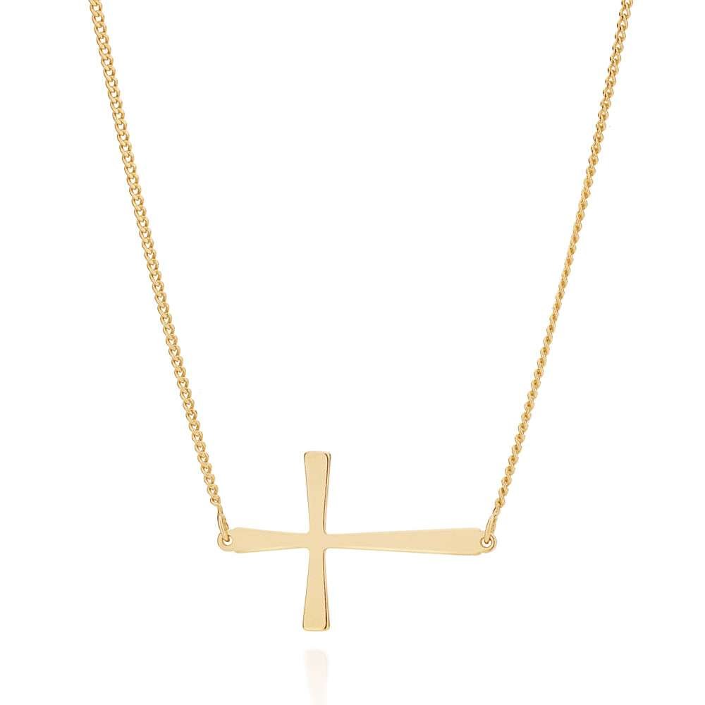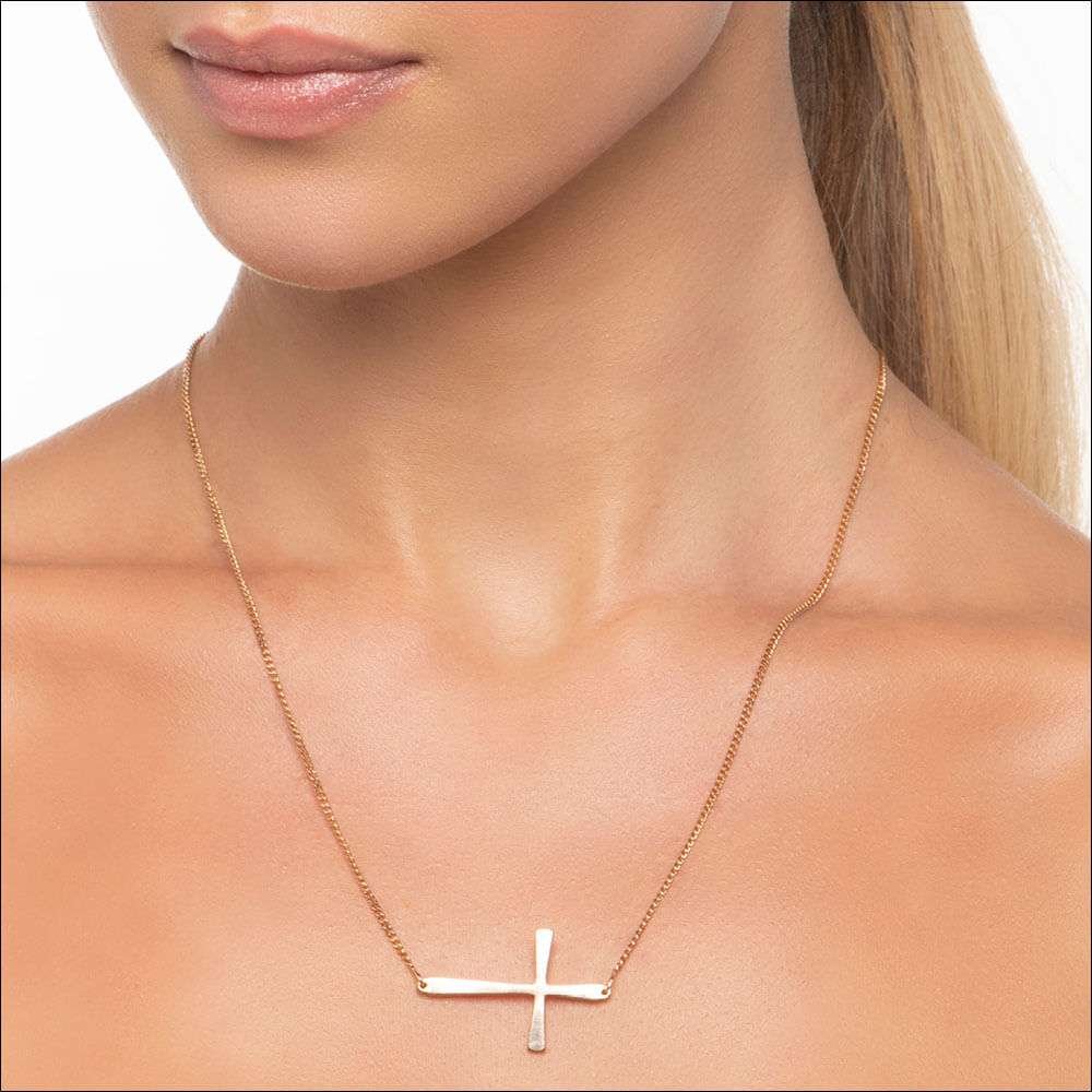 - Diseño: Cadena fina con dije fijo de cruz horizontal.