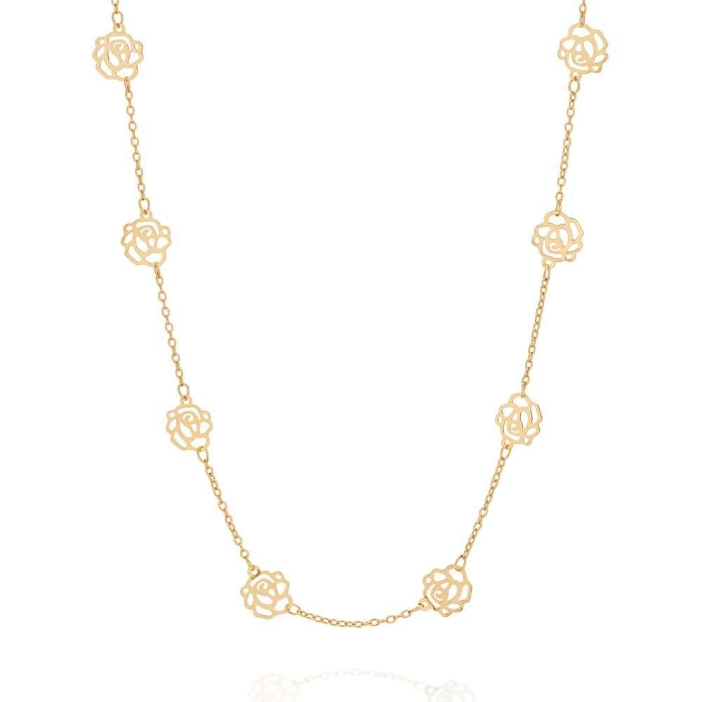El collar presenta una cadena fina que sostiene un dije de rosa meticulosamente elaborado, con detalles que capturan la esencia de esta flor icónica. El resplandeciente enchapado en **oro de 18 quilates** asegura un brillo lujoso y una durabilidad excepcional, manteniendo su lustre a lo largo del tiempo. Con una longitud de 50 cm (aproximada), es perfecto para lucir con elegancia sobre cualquier escote. Como todas las **joyas Rommanel**, este collar es completamente **hipoalergénico**, brindando confort y seguridad para tu piel sensible.