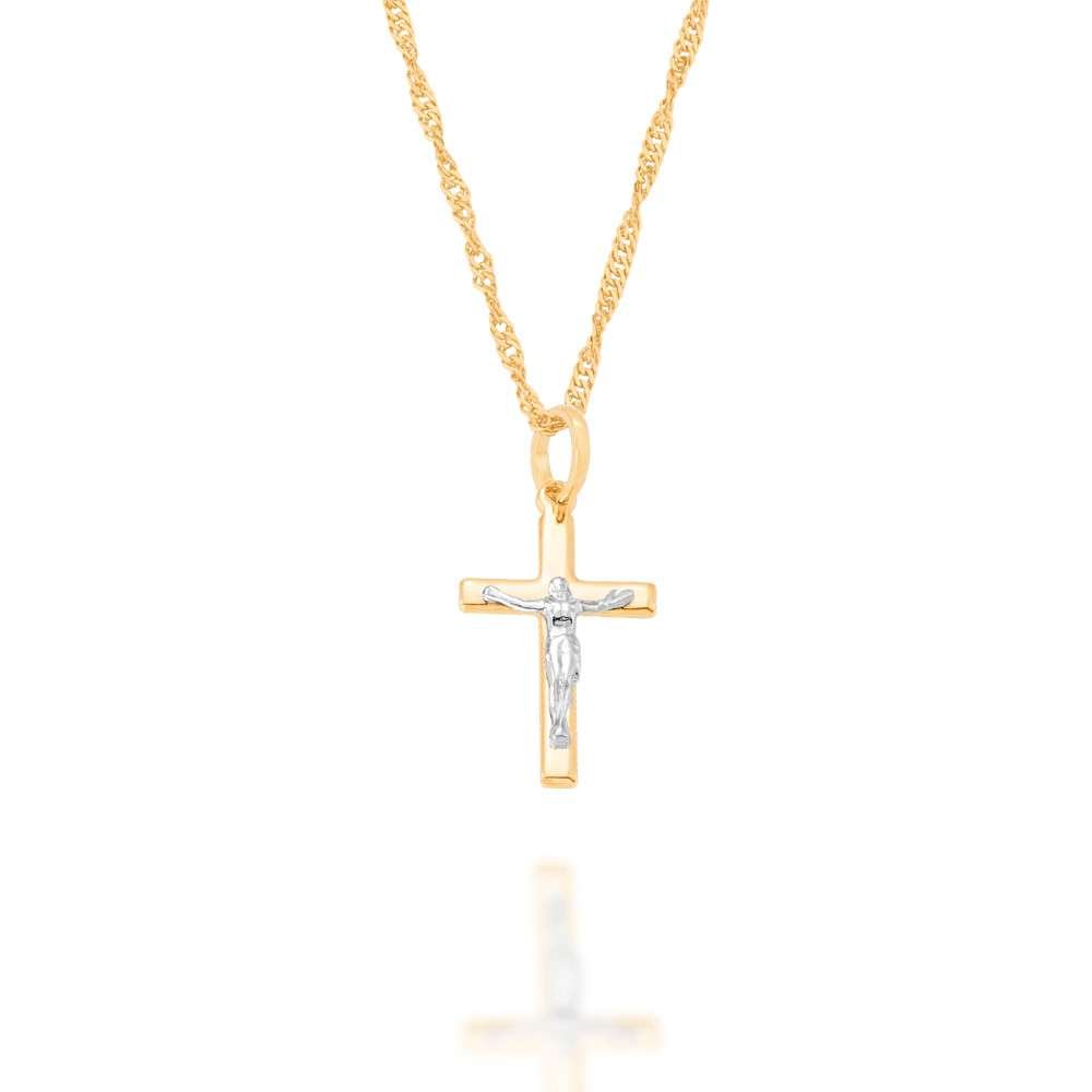 El crucifijo es la representación más poderosa del amor, el sacrificio y la esperanza en la fe cristiana. Este dije de Rommanel ha sido elaborado con profundo respeto y atención al detalle, ofreciendo una pieza de joyería que es tanto un amuleto de protección como una hermosa declaración de fe. Su diseño bicolor, que combina el cálido brillo del enchapado en oro de 18k con el lustre plateado del rodio en la figura de Cristo, crea un contraste visual que realza la solemnidad y belleza de la pieza.