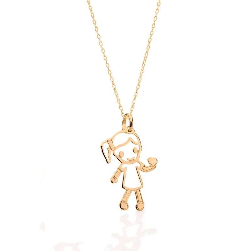 Este dije de niña con corazón en la mano enchapado en oro 18K captura la esencia de la inocencia y el cariño. La silueta de una niña con coleta sostiene un pequeño corazón, simbolizando la conexión con los seres queridos y la alegría de la infancia. Su diseño minimalista, delineado en oro 18K, lo convierte en un accesorio tierno y versátil.
