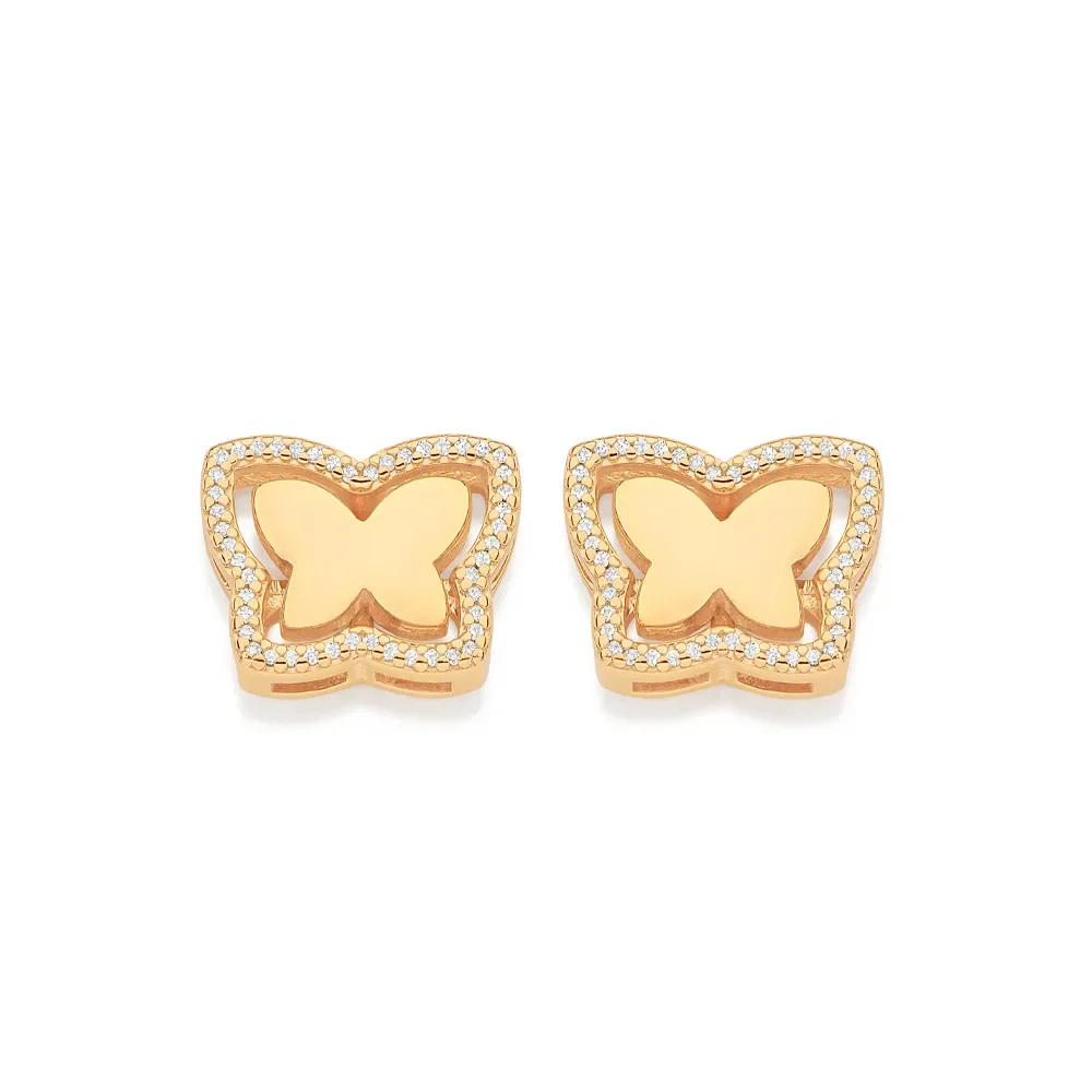 Te presentamos estos hermosos Aretes Mariposa 96 Circonias Enchapados En Oro 18K