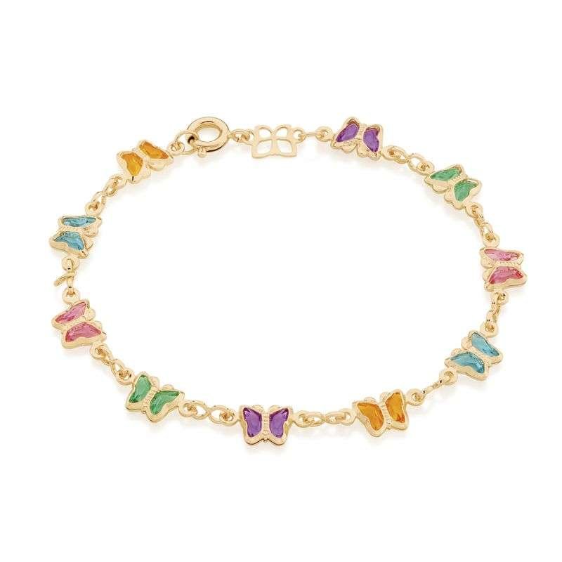 Dale alas a la imaginación de las más pequeñas con la encantadora **Pulsera de Mariposas de Colores**. Esta pieza de joyería Rommanel enchapada en oro 18k es una explosión de color y alegría. Presenta delicados dijes de mariposas, cada una detallada con esmalte de colores vivos, creando un accesorio que simboliza la libertad y la transformación. Es una joya de **oro 18k** que combina diversión y durabilidad.