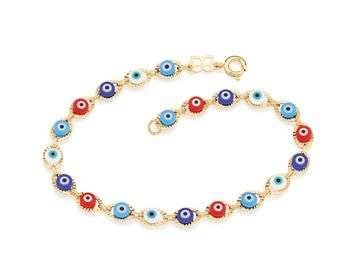 Las Pulseras Con Ojos Turcos De Colores Enchapadas En Oro 18K fusionan la elegancia del oro con el misticismo del ojo turco, reconocido como un amuleto contra las energías negativas. Cada ojo turco aporta un toque de color y personalidad, convirtiendo esta pulsera en un accesorio único para tu día a día.