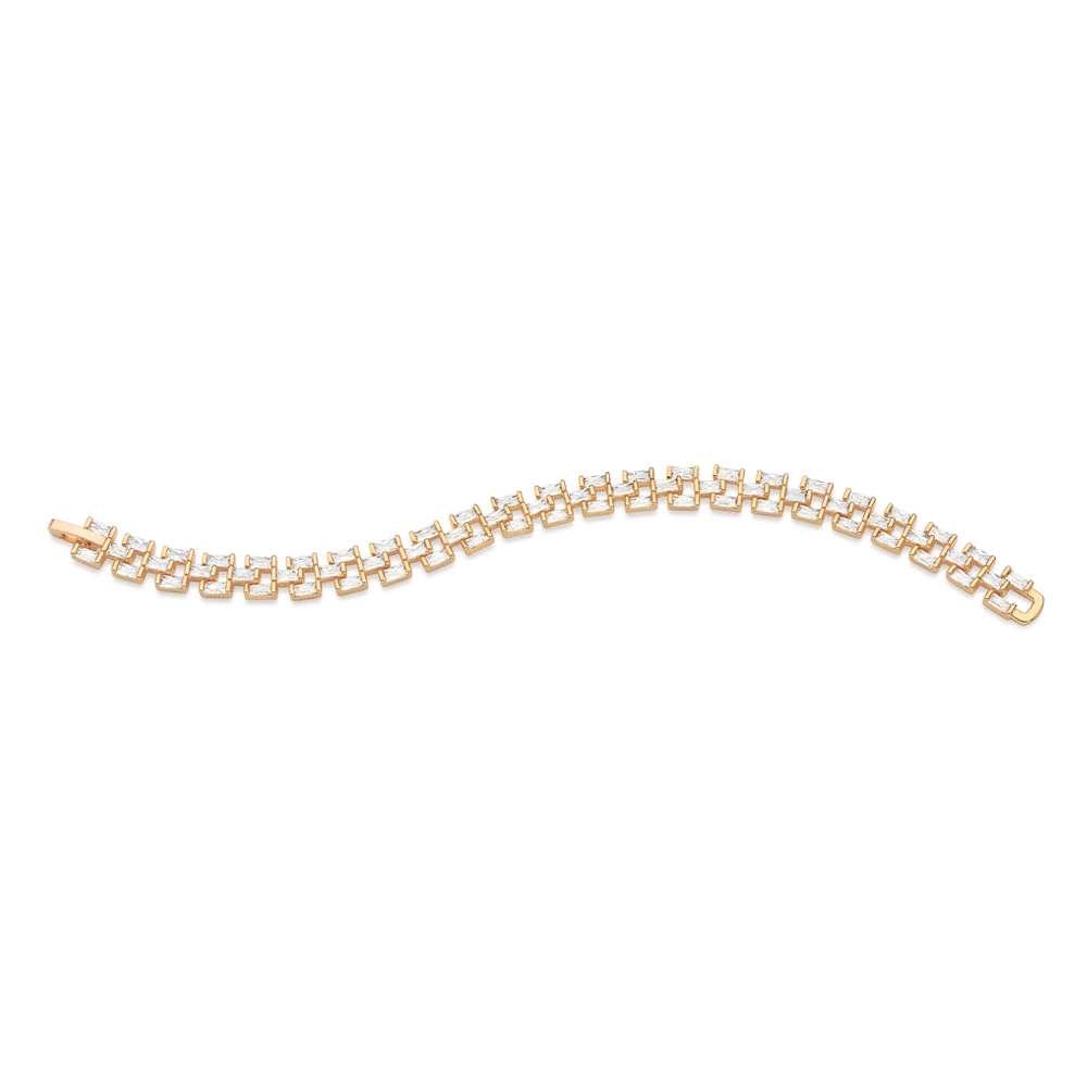 Eleva tu estilo con esta pulsera tipo tenis que combina la perfección geométrica de sus eslabones cuadrados con el destello continuo de las circonias engastadas. Cada sección cuenta con una circonia facetada, creando un efecto de brillo sin interrupciones alrededor de toda la muñeca.