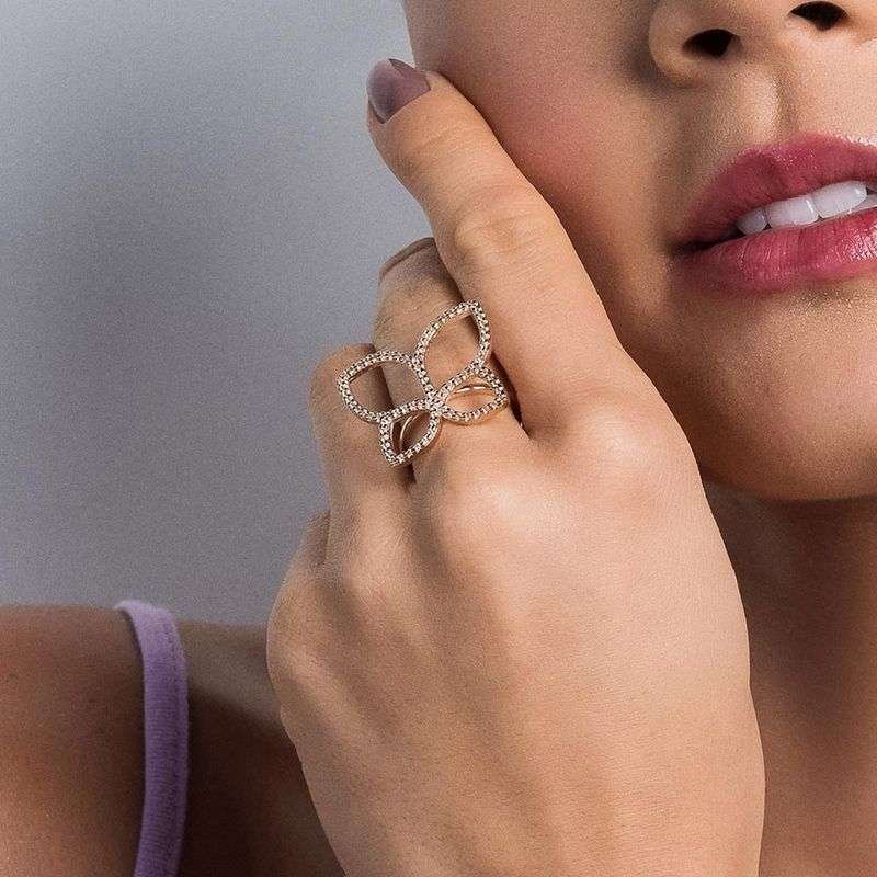 Añade esta sortija maxi mariposa con circonias a tu colección y deja que su diseño audaz y brillante realce tus atuendos. Perfecta para eventos especiales o para darle un toque de glamour a tu día a día, esta pieza une volumen, detalle y elegancia en una sola forma.