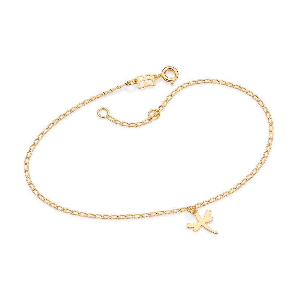 Tobillera con Dije de Libélula Chapada en Oro de 18 K